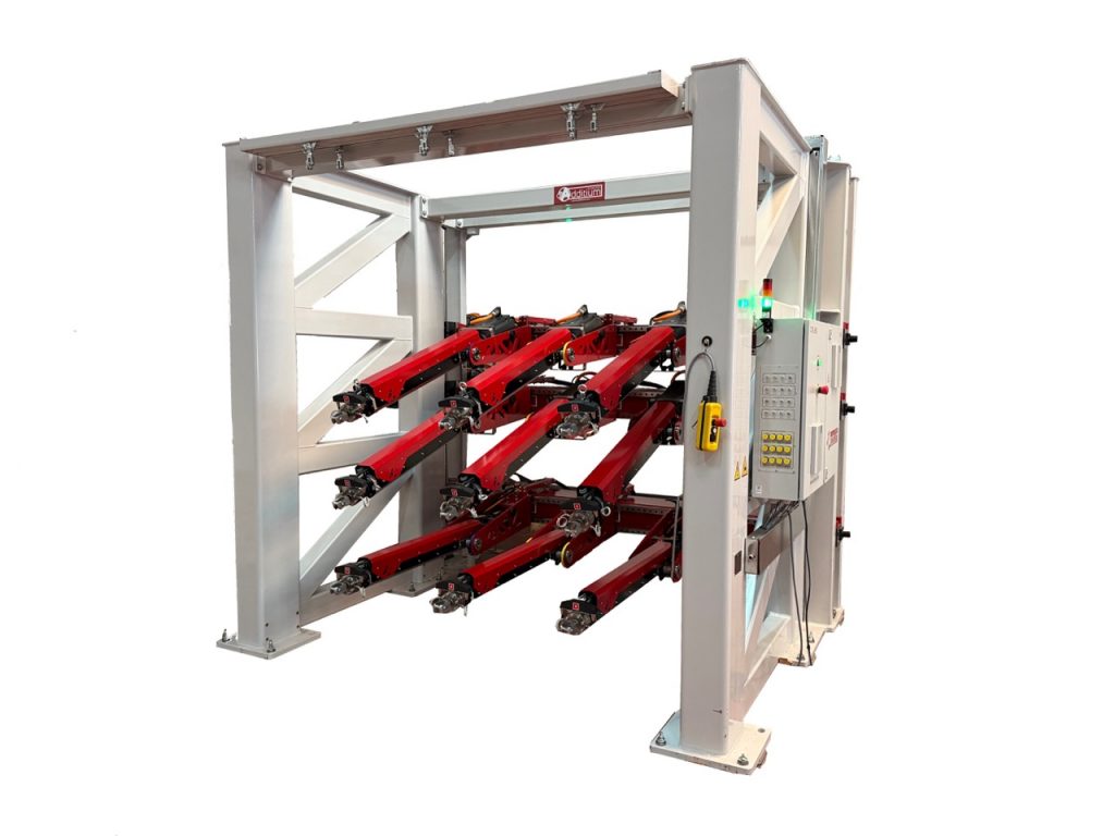 The system configuration allows operation with up to 12 actuators, delivering dynamic forces in the range of 30–50 kN at speed of 300 mm/s, together with an extended actuator positioning range fully motorized.